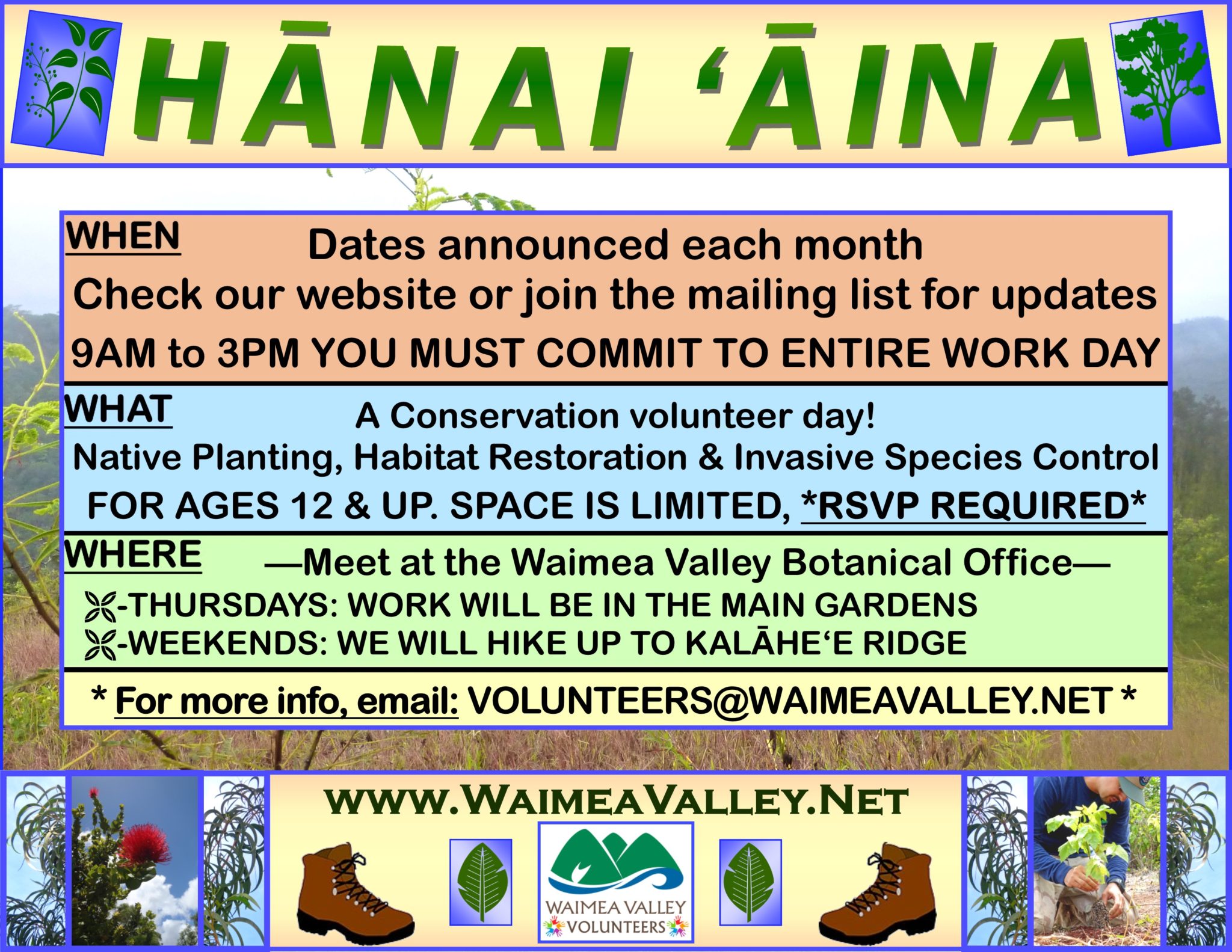 - Friday April 9th 9 AM – 12 PM: Kaha Native Plant Garden