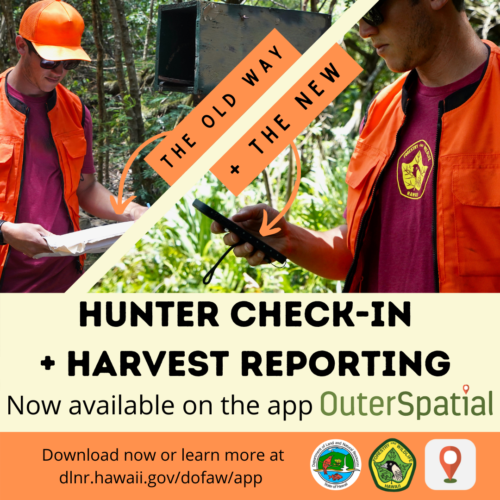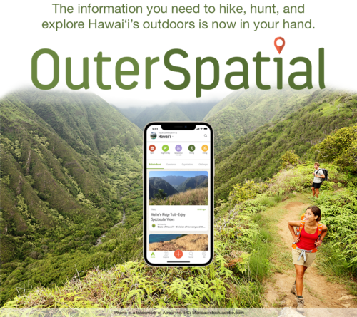 The Department of Land and Natural Resources, Division of Forestry and Wildlife, is pleased to announce that information about trails and areas managed by DOFAW (totaling over one million acres, roughly a quarter of the land area in Hawaiʻi) is now on the app Outerspatial.