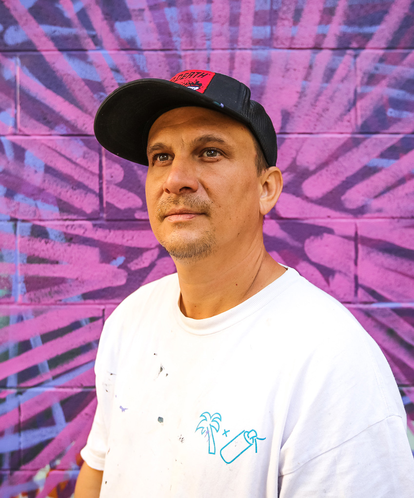 His paintings and murals can be found in Hawai‘i (Bishop Museum, Hawai‘i Convention Center, Pow! Wow! Hawai‘i) and internationally in Mexico, Canada, New Zealand, Nepal, and beyond. His clients include the State Foundation on Culture and the Arts, Hawaiian Electric, Parley for Oceans, and major hospitality brands. Working from his studio in Kea‘au, Kai continues to push the boundaries of large-scale painting as a tool for storytelling and social impact.