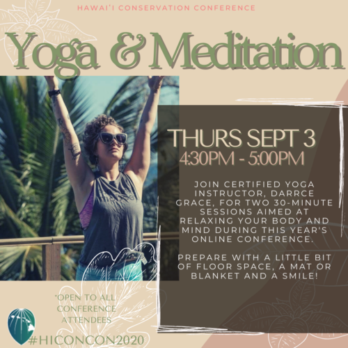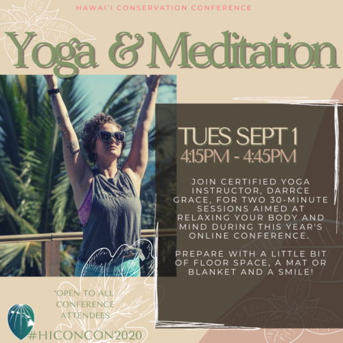 Join certified Yoga Instructor, Darrce Grace, for a 30 minute session aimed at relaxing your body and mind during this yearʻs online Conference. Prepare with a little bit of floor space, a mat or blanket and a SMILE!